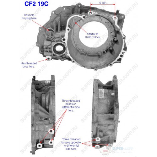 Three threaded bosses opposite to differential side.