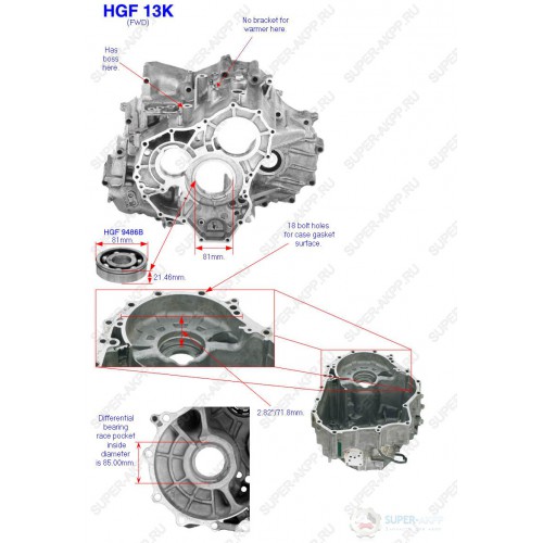 Counter shaft bearing = HGF 9486B, 81mm O.D. X 21.46mm Thick.