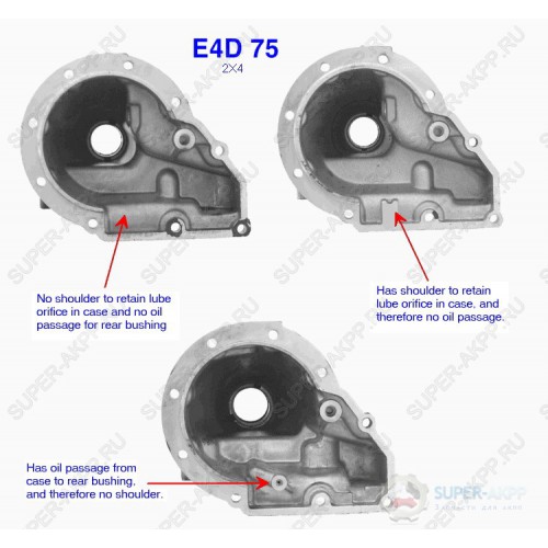 No shoulder to retain lube orifice in case and no oil passage for rear bushing.